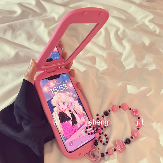 Kawaii iPhone Case w/ Bracelet Strap & Mirror